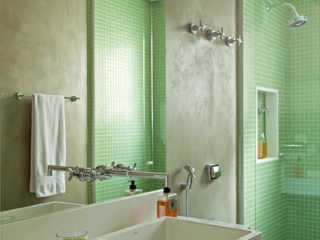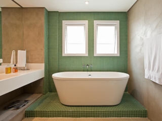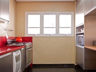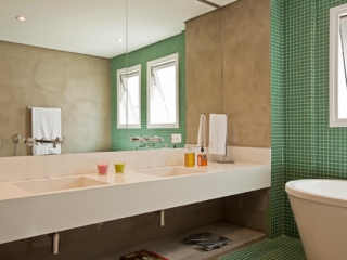 Palha na cozinha e natural no banheiro